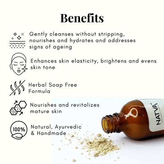 Natva offers Ayurveda-inspired anti-aging Skincare products for all skin types. We have multiple product ranges like an anti-aging face oil, anti-aging face pack, Face massage tools like Kansa wand and Guasha, and soap-free face cleansers. Discover the power of Ayurveda-inspired anti-aging products for youthful and radiant skin. Our range of anti-aging skincare harnesses the wisdom of Ayurvedic herbs and natural ingredients to combat signs of aging. Achieve a smoother, firmer, and more luminous complexion with our carefully crafted formulations. Shop now for effective and holistic anti-aging solutions.